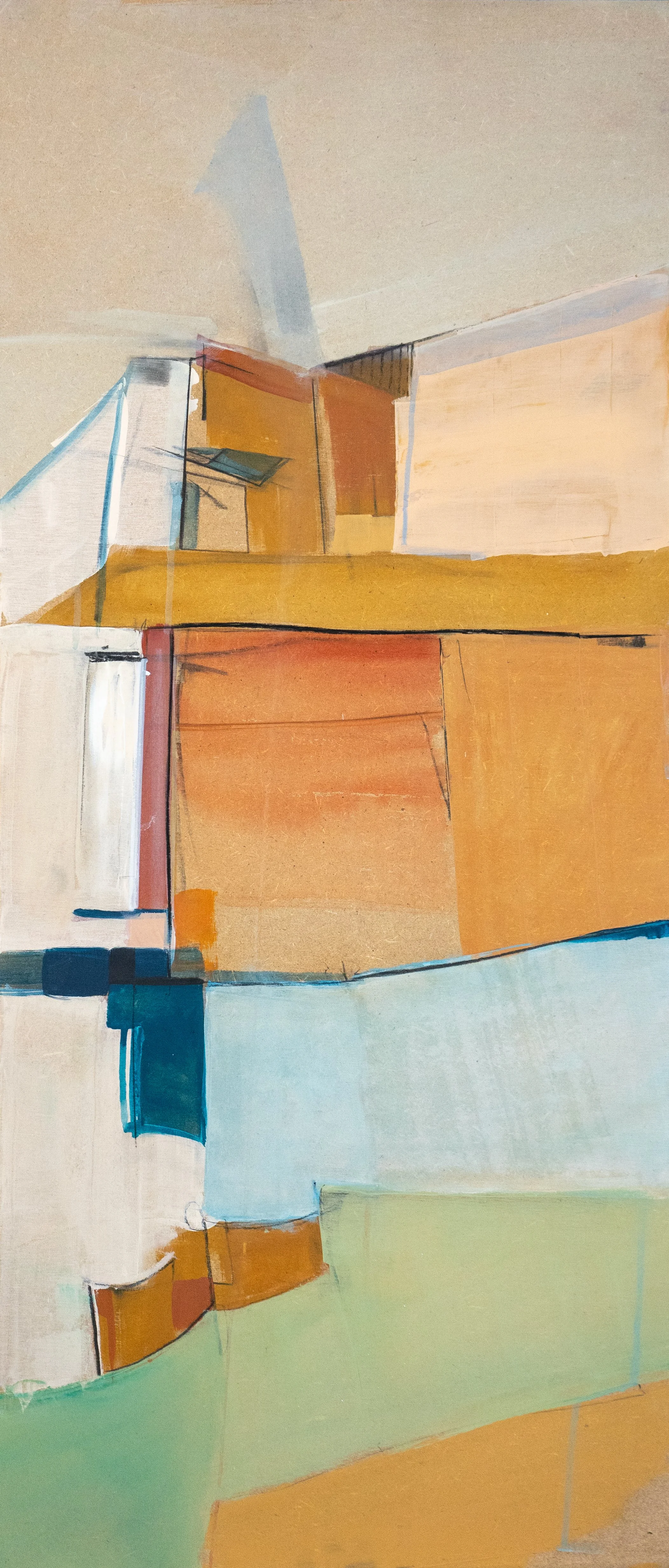 The overall effect is serene yet dynamic, inviting contemplation and reflection while embodying a sophisticated, contemporary appeal. This artwork serves as a striking addition to any modern interior, celebrating form and color without overwhelming the senses.